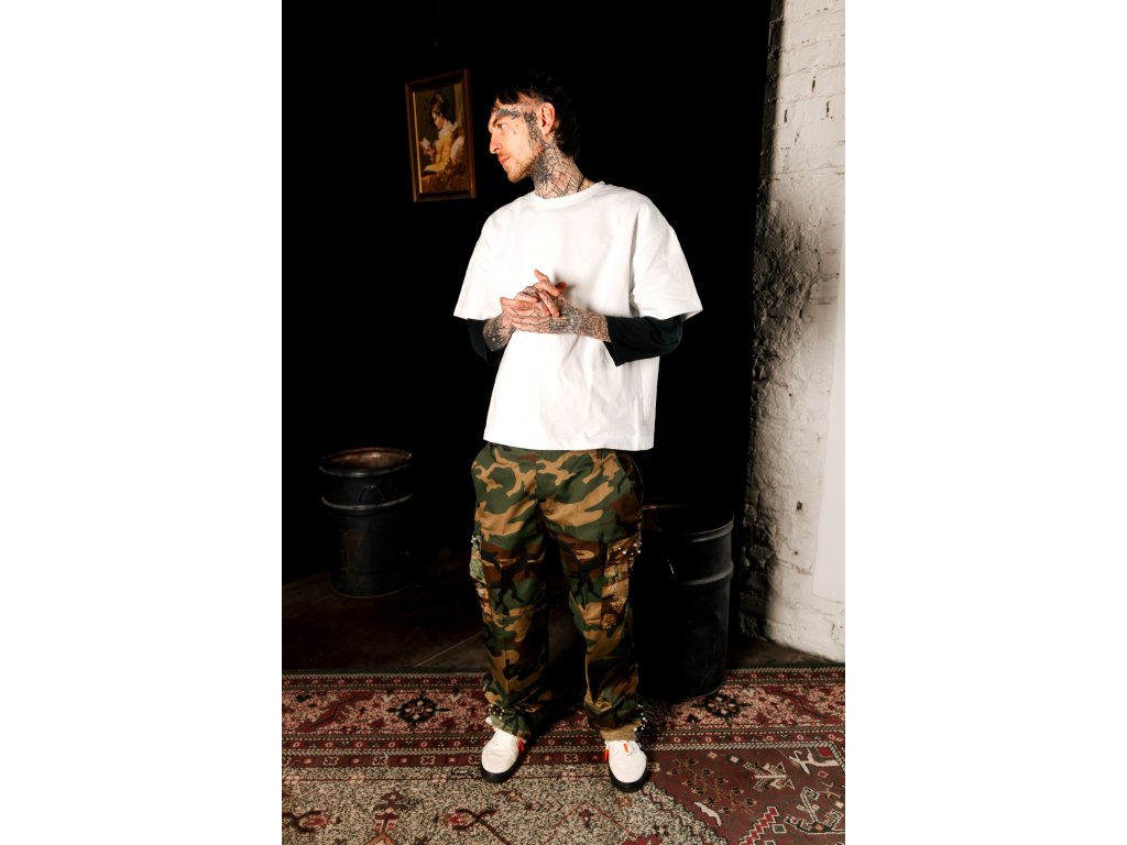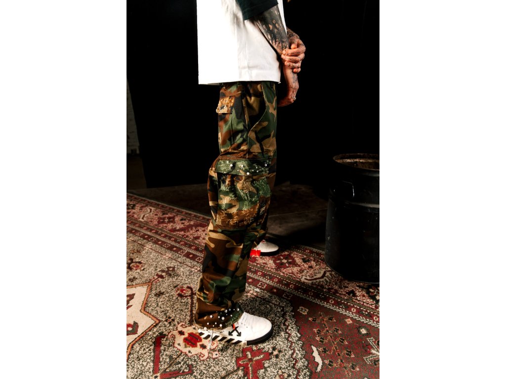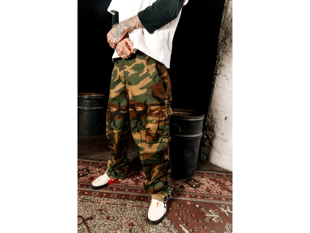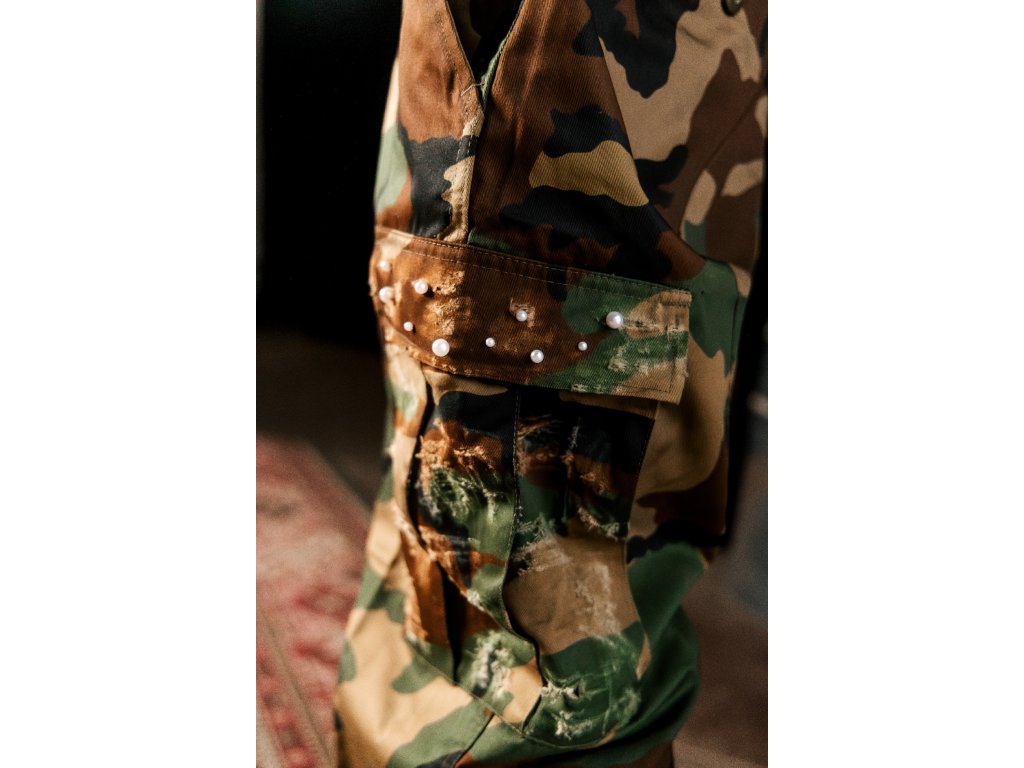 • Detaily: perlové aplikace na spodní straně nohavic, boční a zadní kapsy, zapínání v pase na knoflík