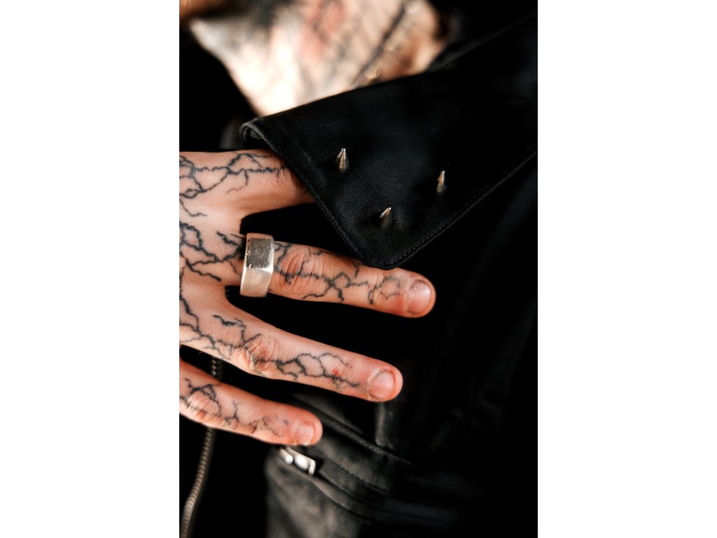 Detaily: velká krajková výšivka na zádech, ostny na límečku, jedna přední kapsa