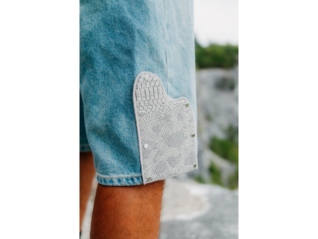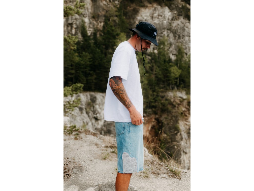 Heavyweight šortky z denimu v širokém střihu, ideální volba pro výrazný, ale pohodlný streetwear.